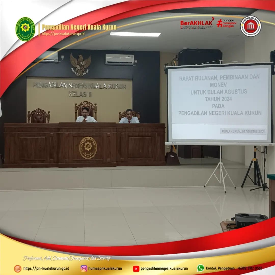 RAPAT BULANAN, PEMBINAAN, SOSIALISASI DAN MONITORING DAN EVALUASI BULAN AGUSTUS 2024 PENGADILAN NEGERI KUALA KURUN